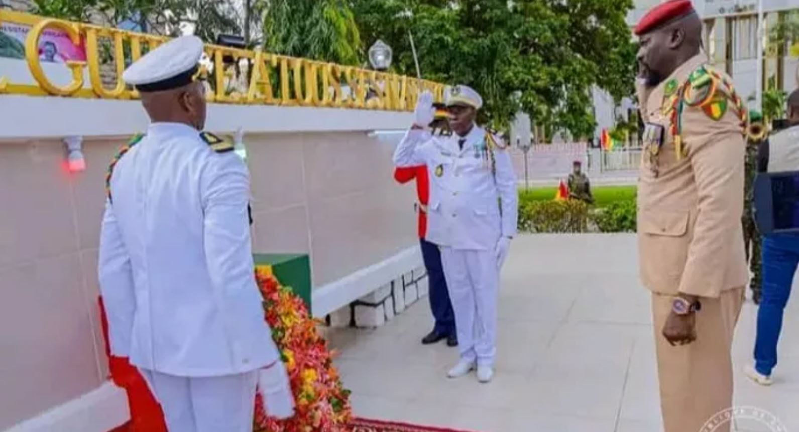Dès 10 h, heure locale, la Place des Martyrs, située à Kaloum, au centre-ville de la capitale, était déjà bondée. Membres du gouvernement, dont le Premier ministre Bah Oury, présidents d’institutions, fonctionnaires, militaires et diplomates ont tous pris part à la cérémonie.