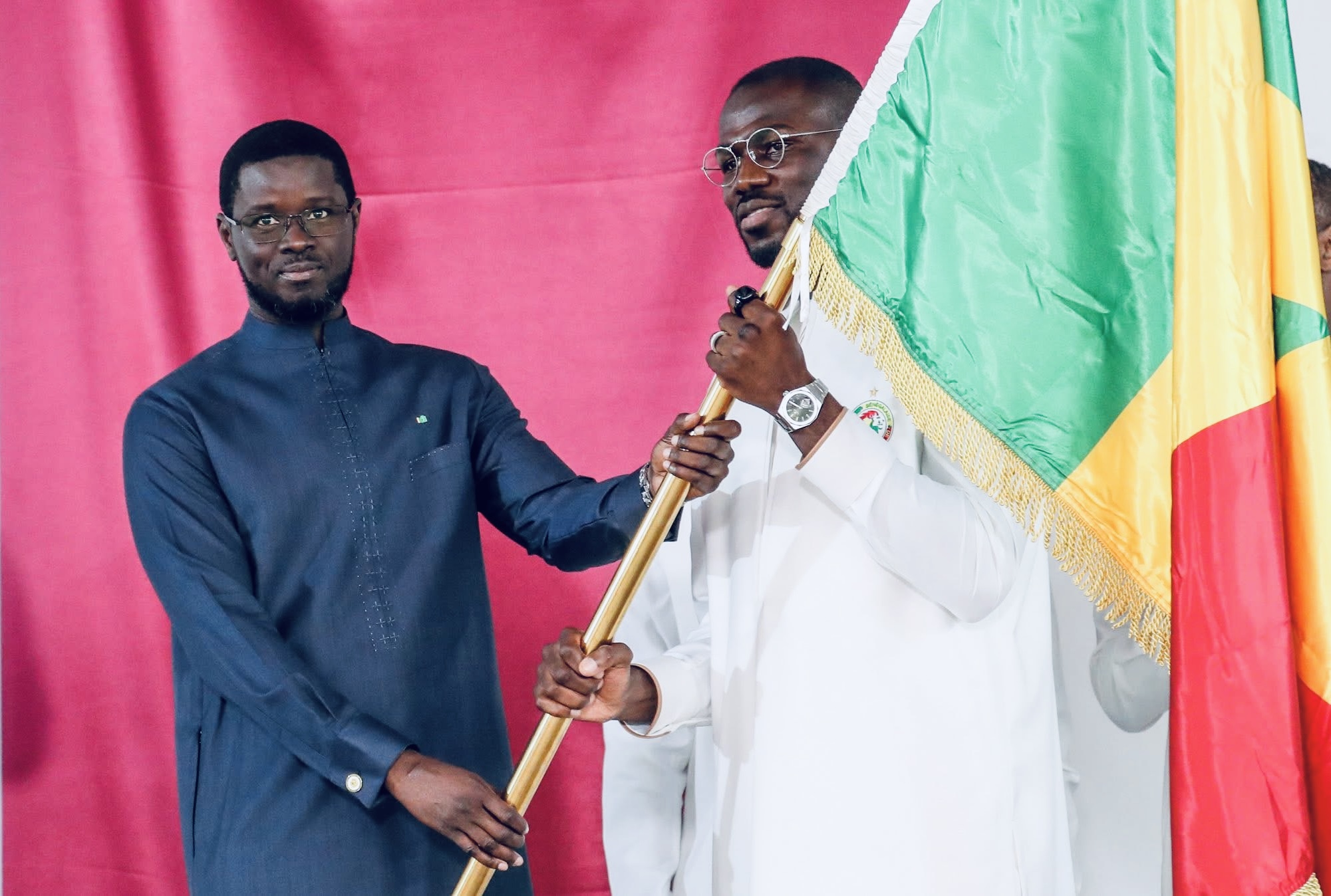 C’est lors d’une cérémonie solennelle au Palais de la République que les Lions du Sénégal ont reçu le drapeau national en vue de la Coupe d’Afrique des Nations, Maroc 2025. Le Premier ministre Ousmane Sonko, la ministre de la Jeunesse, des Sports et de la Culture, Khady Diène Gaye, ainsi que plusieurs autres autorités ont pris part à l’événement cet après-midi.